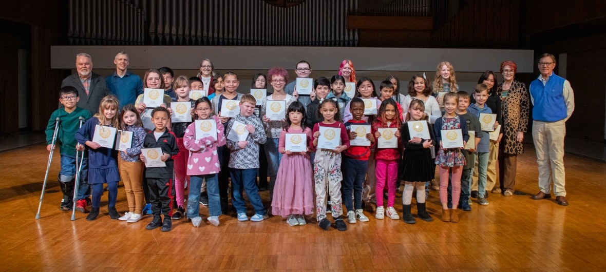The LUX Center for the Arts honored 49 students from 23 Lincoln Title 1 schools with scholarships at its Ninth Annual Art Scholar Ceremony, held on Sunday, January 19, 2025, at O’Donnell Auditorium at Nebraska Wesleyan University. The event celebrated the recipients of $500 scholarships through the LUX Art Scholar Program, which provides young artists with opportunities to expand their creativity and further their artistic education.