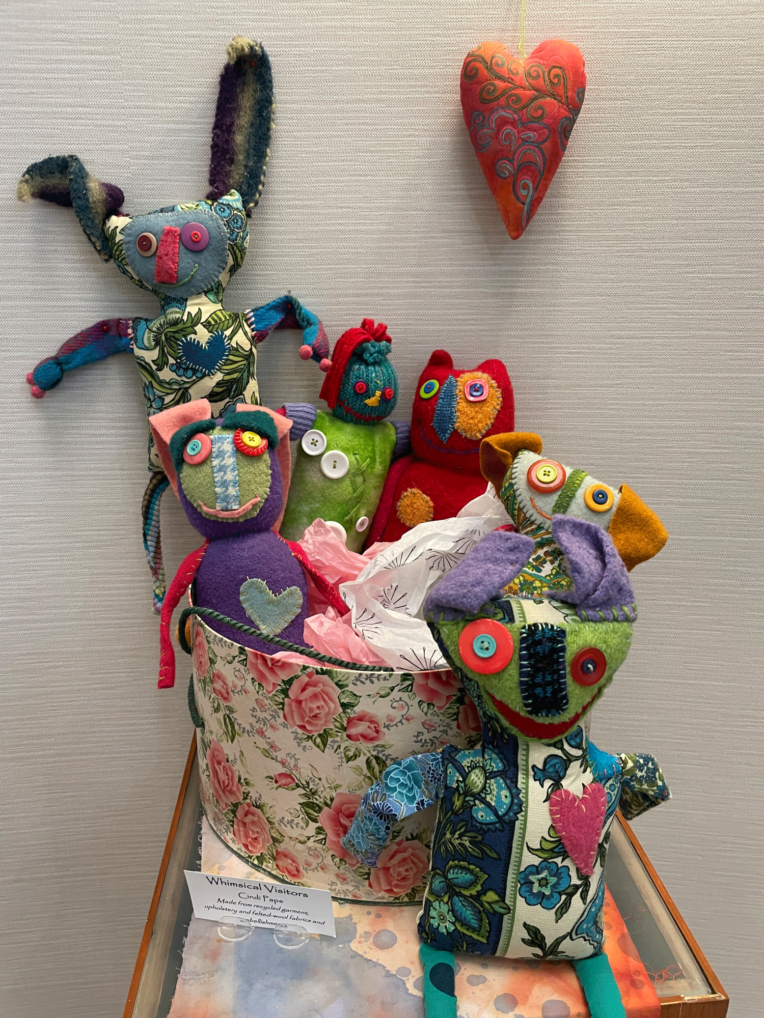 Fiber artist Cindi Pape will demonstrate "Creating Creatures" using a variety of fabrics and embellishments and hand stitching in this FREE event in the Community Gallery.