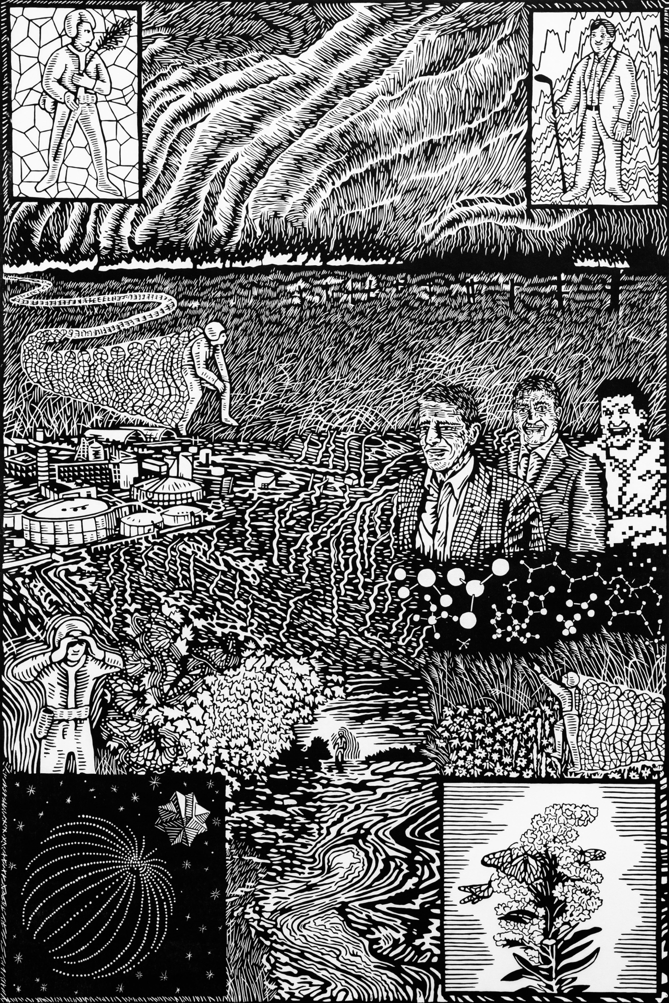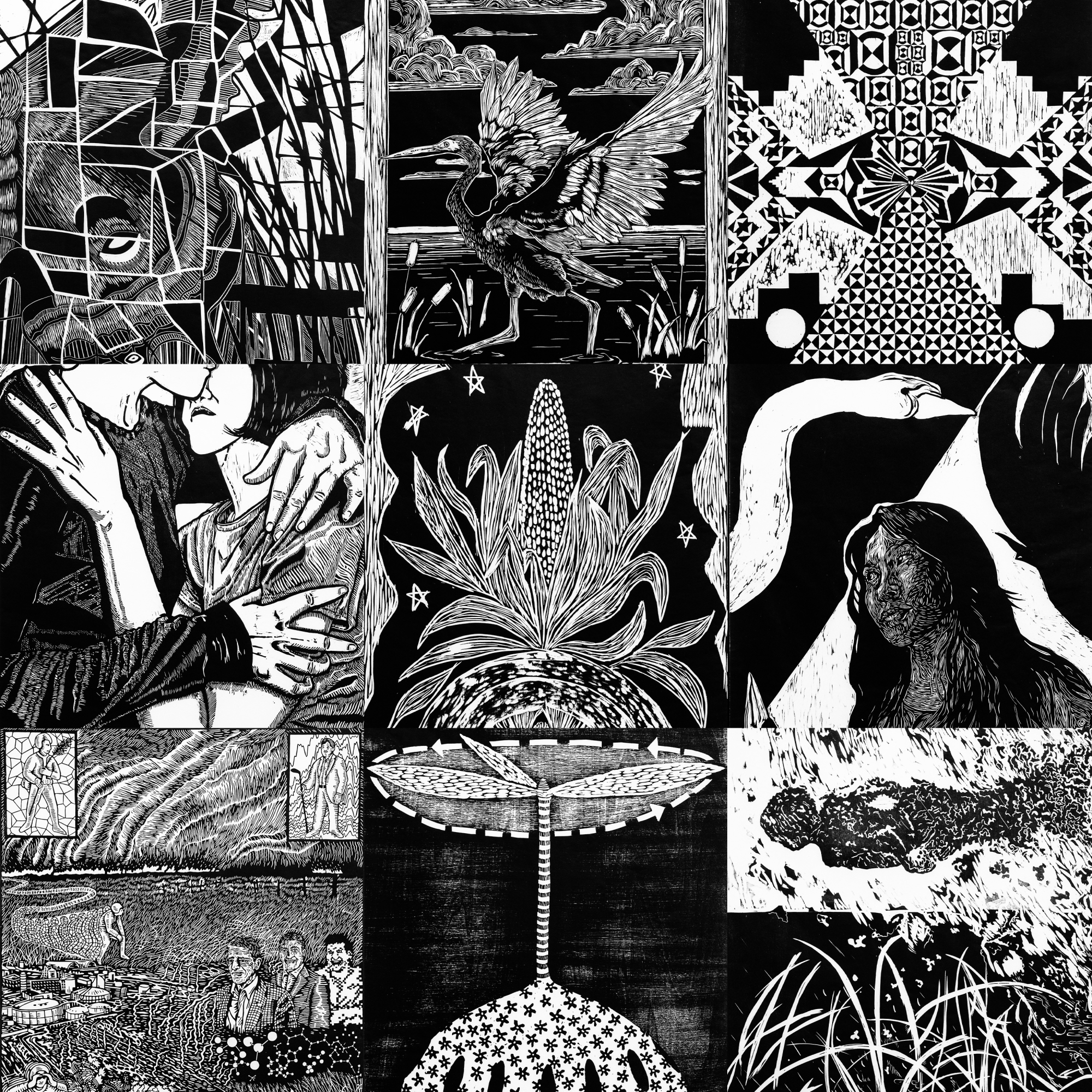 Join LUX Center for the Arts and Constellation Studios for live mural installations throughout Lincoln in June. Nine Nebraskan artists were invited to design and carve their own woodblock at Constellation Studios. The resulting 9 large 24" x 36" black and white prints will make a composite mural that will be wheat-pasted around Lincoln. The presentation will be 108” tall by 72” wide highlighting the woodcut print medium and each artists’ unique vision.