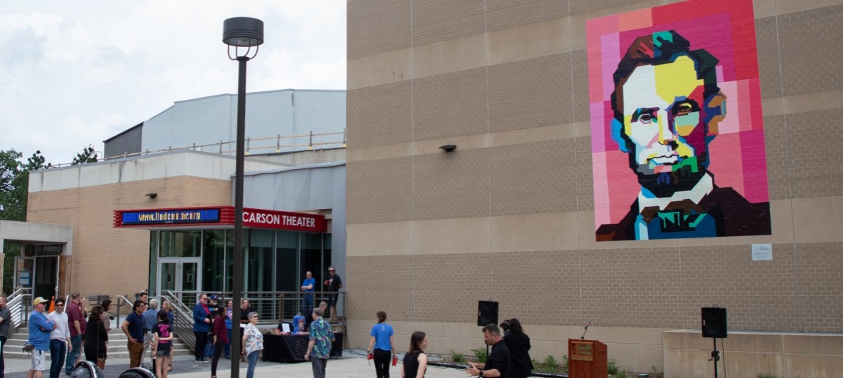 "The Lied Center is proud to be showcasing one of the biggest and potentially one of the most iconic new pieces of public art for Lincoln, Nebraska. Celebrating one of our nation’s greatest presidents and our city’s namesake is the Lied Center’s honor,” said Bill Stephan, executive director of the Lied Center. “The new work will bring beauty to the 11th Street entrance to campus and the entry to the Carson Theater at the Lied Center. We are excited to not only have world-class performances at the Lied, but also have a world-class mural that was made possible thanks to project partners including the International Quilt Museum, the Lux Center for the Arts, and Visit Lincoln.”