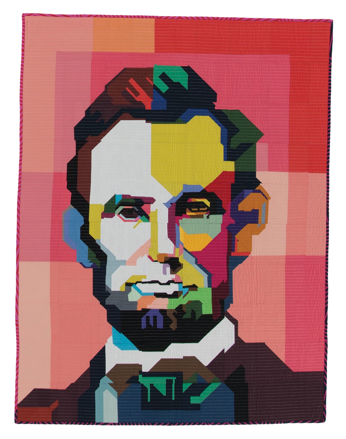The quilt was made by New York-based quilt artist Kimberly Soper in 2016, deriving her quilt’s design from a pop-art portrait created by artist Ihsan Ekaputra. Portraits like Ekaputra’s rendition of Lincoln are known as Wedha’s Pop Art Portraits (WPAP) named for Indonesian artist Wedha Abdul Rasyid who is credited for popularizing the style.