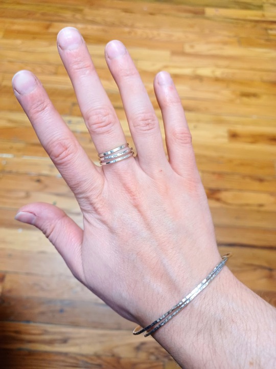 In this introductory metalsmithing workshop, participants will work with Argentium silver—a bright, strong, highly tarnish-resistant, and hypoallergenic alternative to sterling—to design and create their own custom stacking rings and bangles. You’ll learn foundational metal fabrication techniques, including shaping, soldering, filing, sanding, and adding texture to your pieces. By the end of the session, each participant will leave with a couple of finished pieces, ready to wear and enjoy.  All materials are provided. This workshop is open to adults ages 16+.