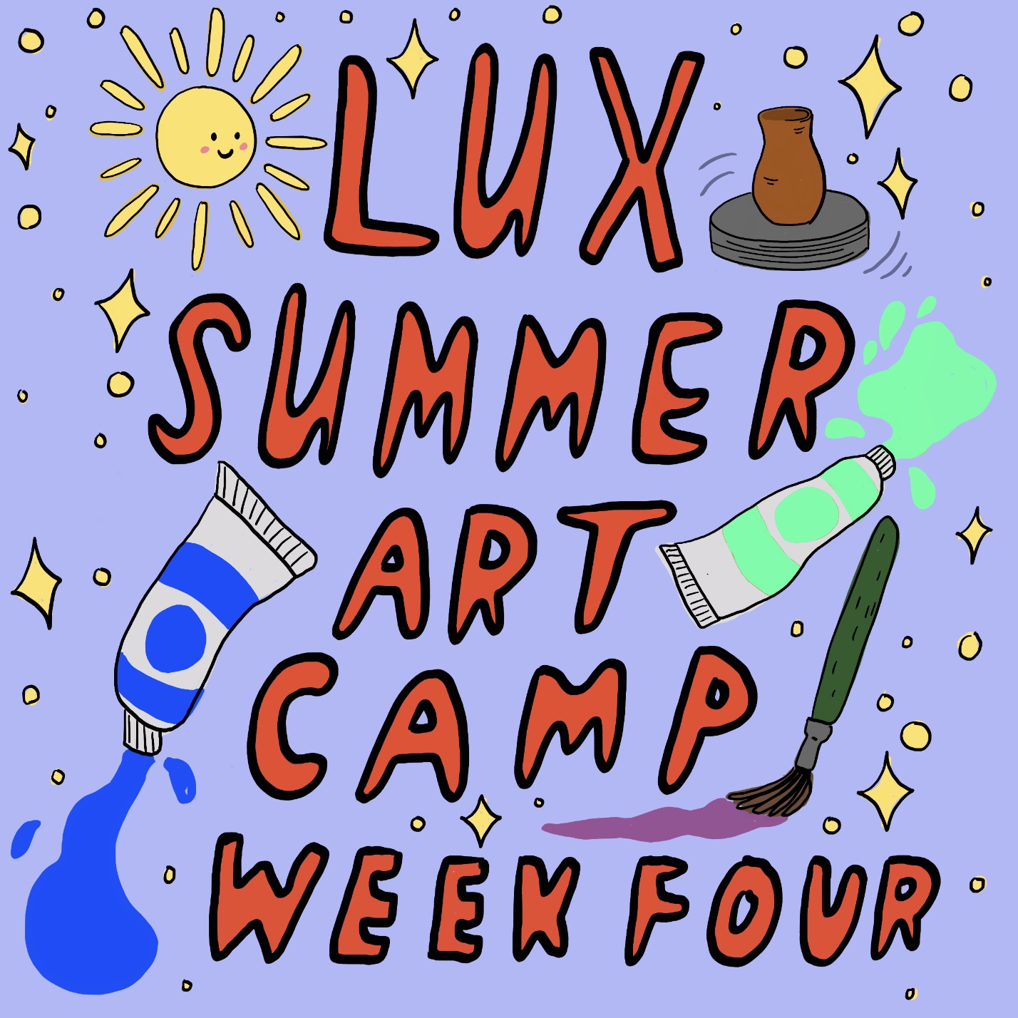 LUX camps are offered for kindergarten graduates through students who are 15 years old. All campers must have completed kindergarten (no exceptions) prior to attending camp and must have basic classroom skills. Students must be at least 9 years old to learn the pottery wheel and age 10 is even better, as the person throwing must be physically large enough to push the clay around. Please select camps based on your child's current age. Kids - Age 5-8 (must have completed Kindergarten), Youth - Age 9-11, and Teens - Age 12-15.